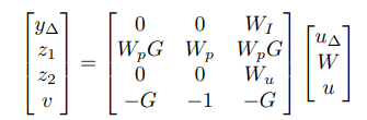 H∞ Optimal Control: The generalized plant incorporated uncertainty channels explicitly, enabling direct robust stability analysis. Bisection on crossover frequency achieved γ ≈ 1.05 using hinfsyn. The plant structure: