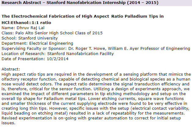 Location: Stanford Nano-fabrication Laboratory, Stanford, CA